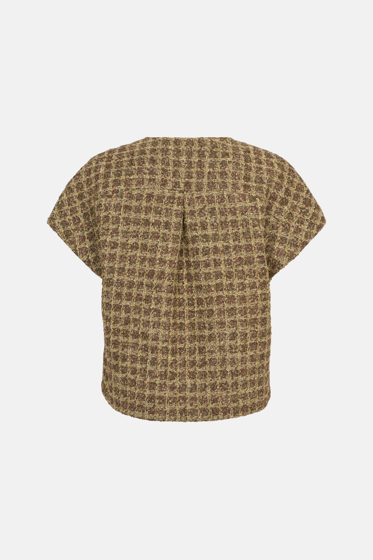 - Rund halsudskæring - Let cropped længde - Løs pasform - Vævet struktur med eksklusivt udtryk