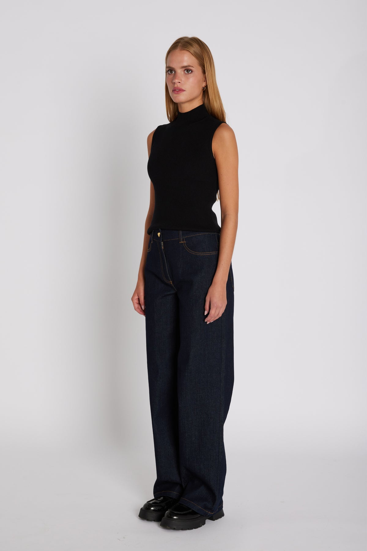 7659RDFLuna er et par moderne bukser med vide ben og en flatterende silhuet, der kombinerer klassisk skrædderi med feminin lethed.