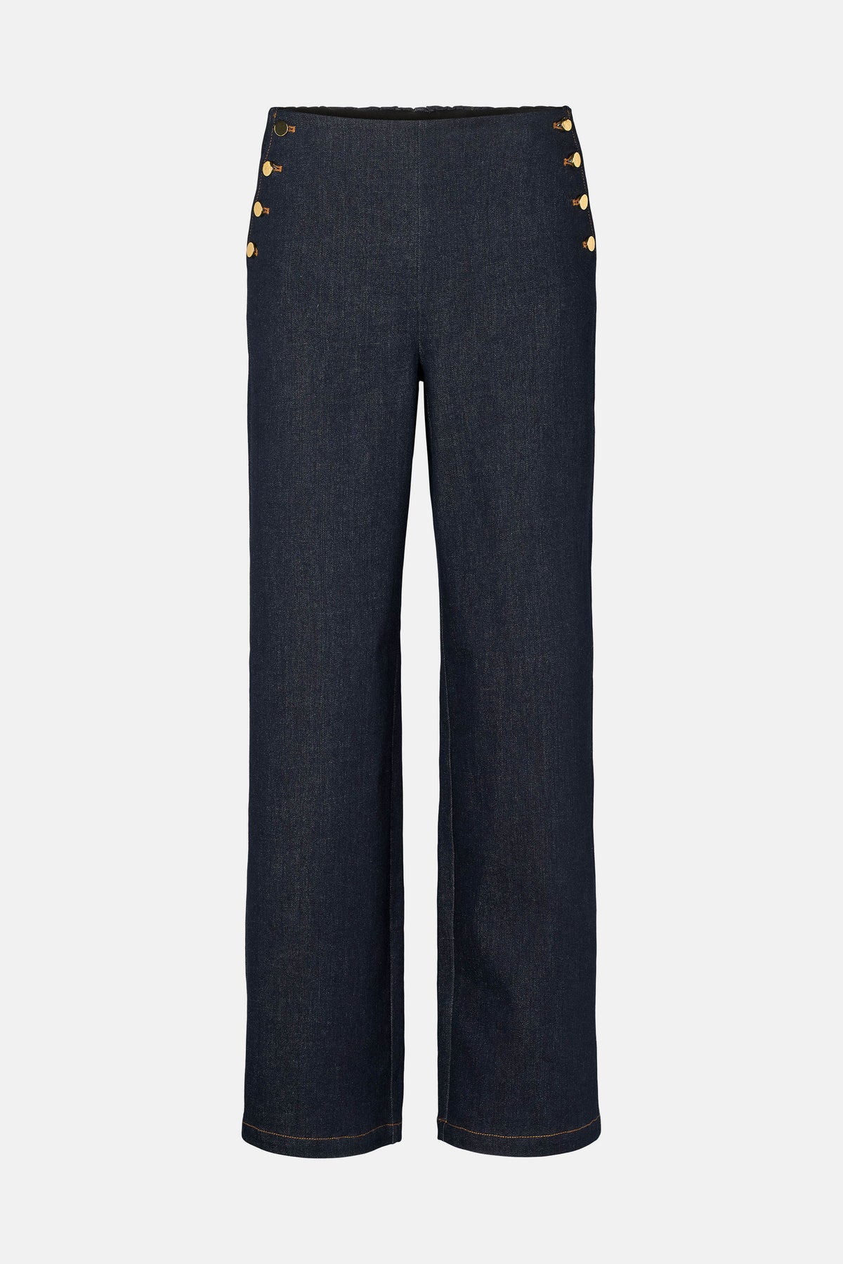 7659RDFSamie er et par elegante bukser med vide ben og dekorative knapper, der skaber et feminint og sofistikeret udtryk.