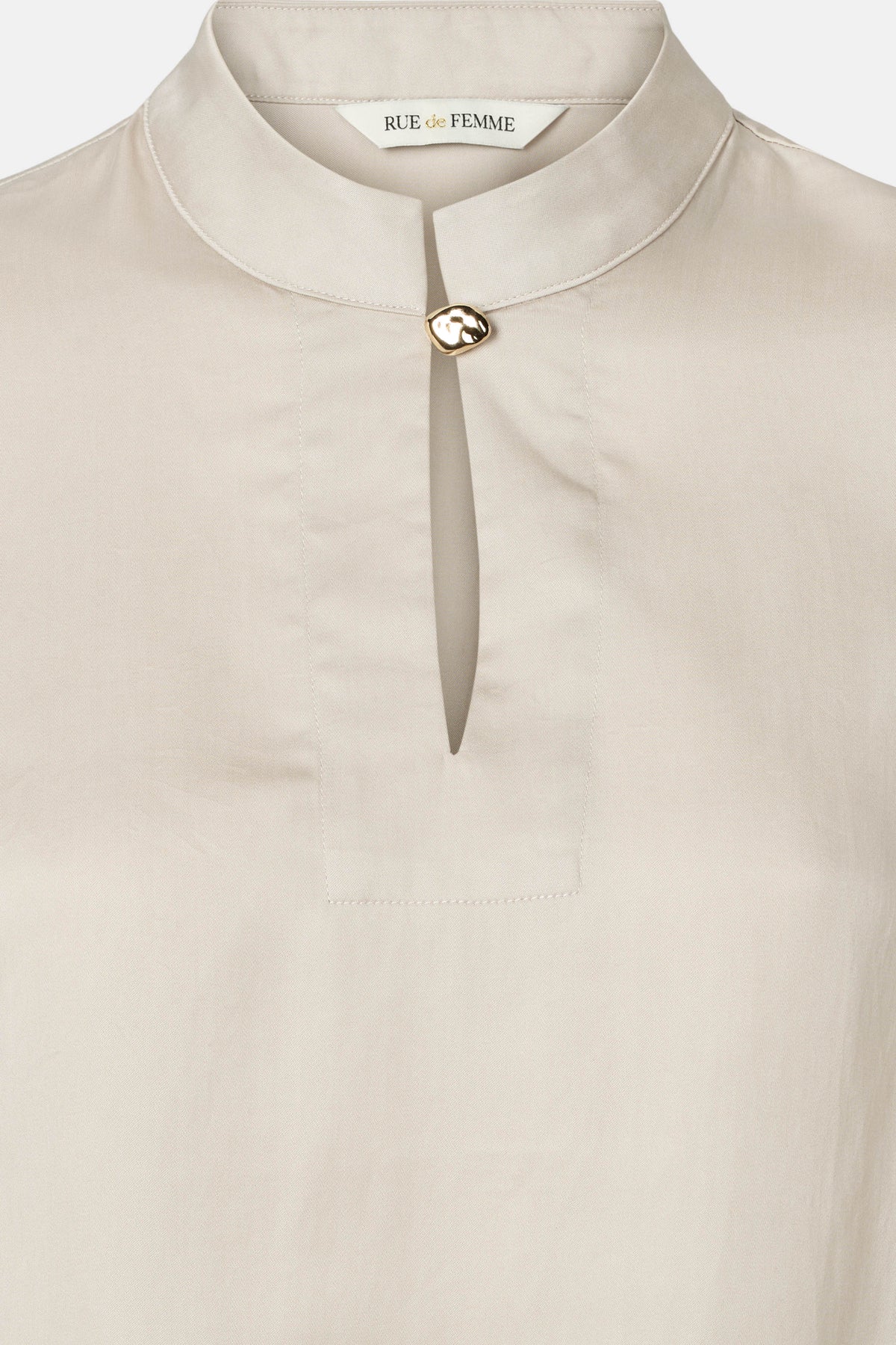 7741RDFAisling bluse er en elegant og enkel style med et moderne twist. Den har en lille stående krave og en nøglehulsåbning med dekorativ knap foran, som giver et sofistikeret udtryk. De lette ærmer med vidde skaber en flatterende silhuet.