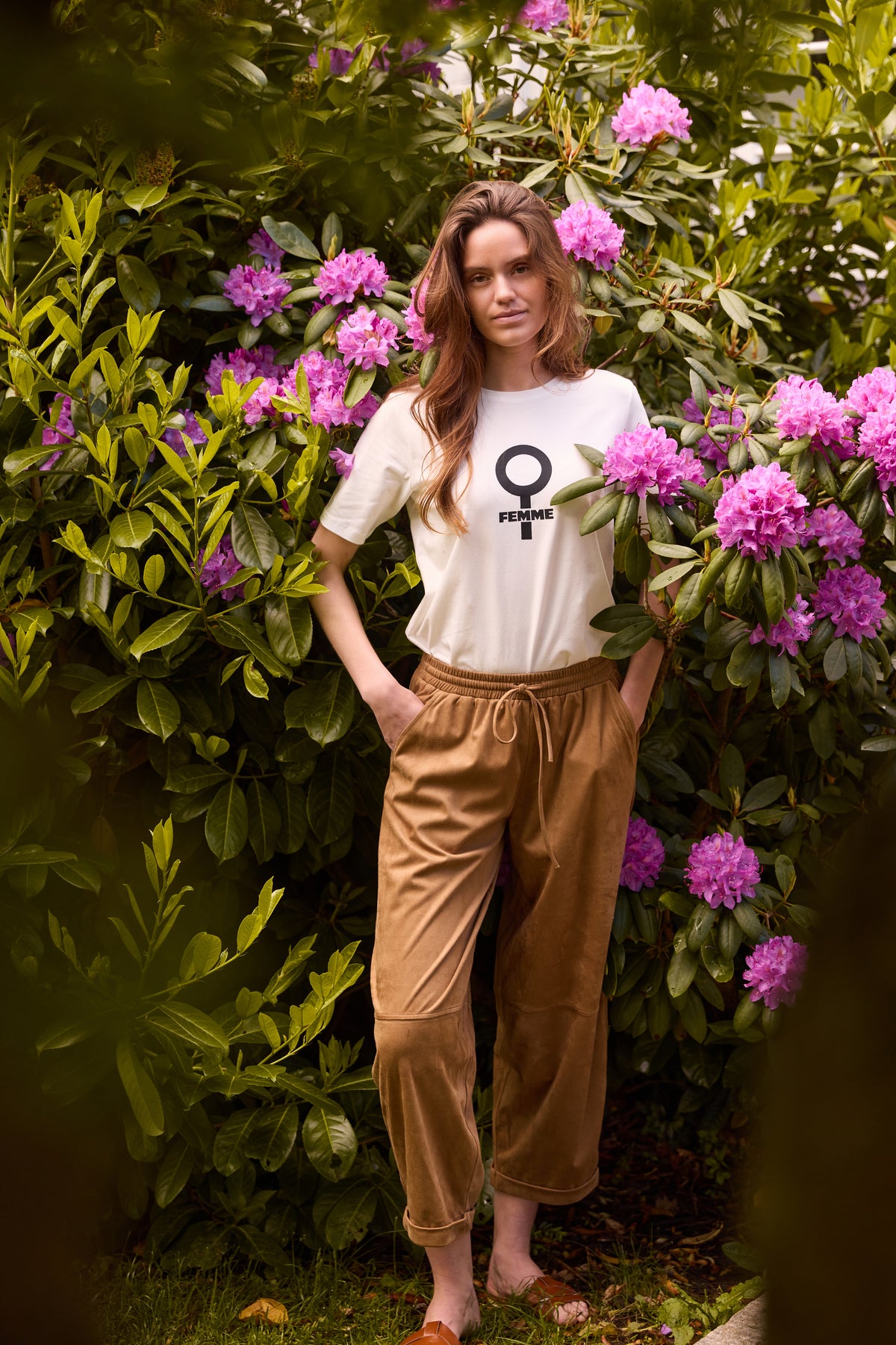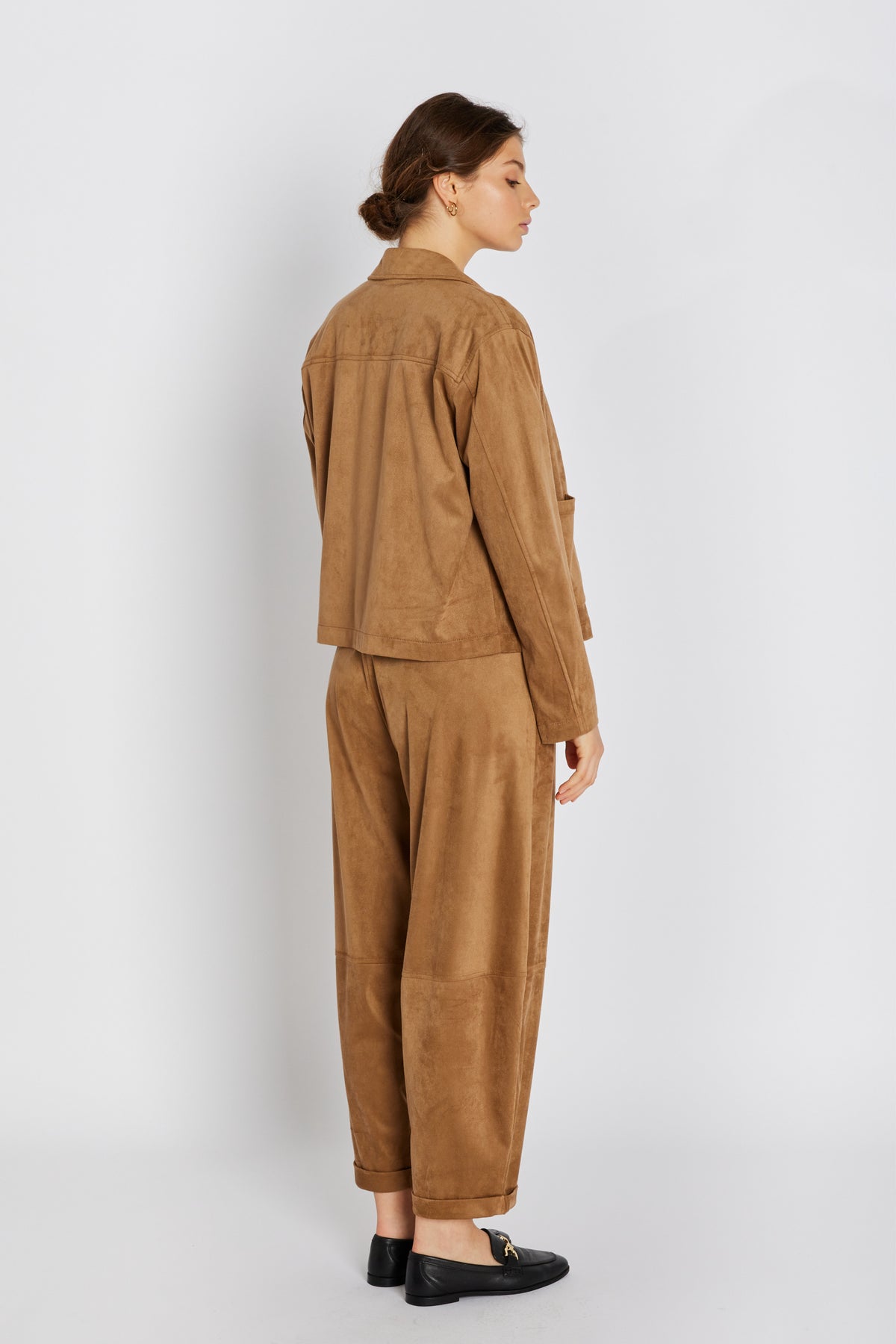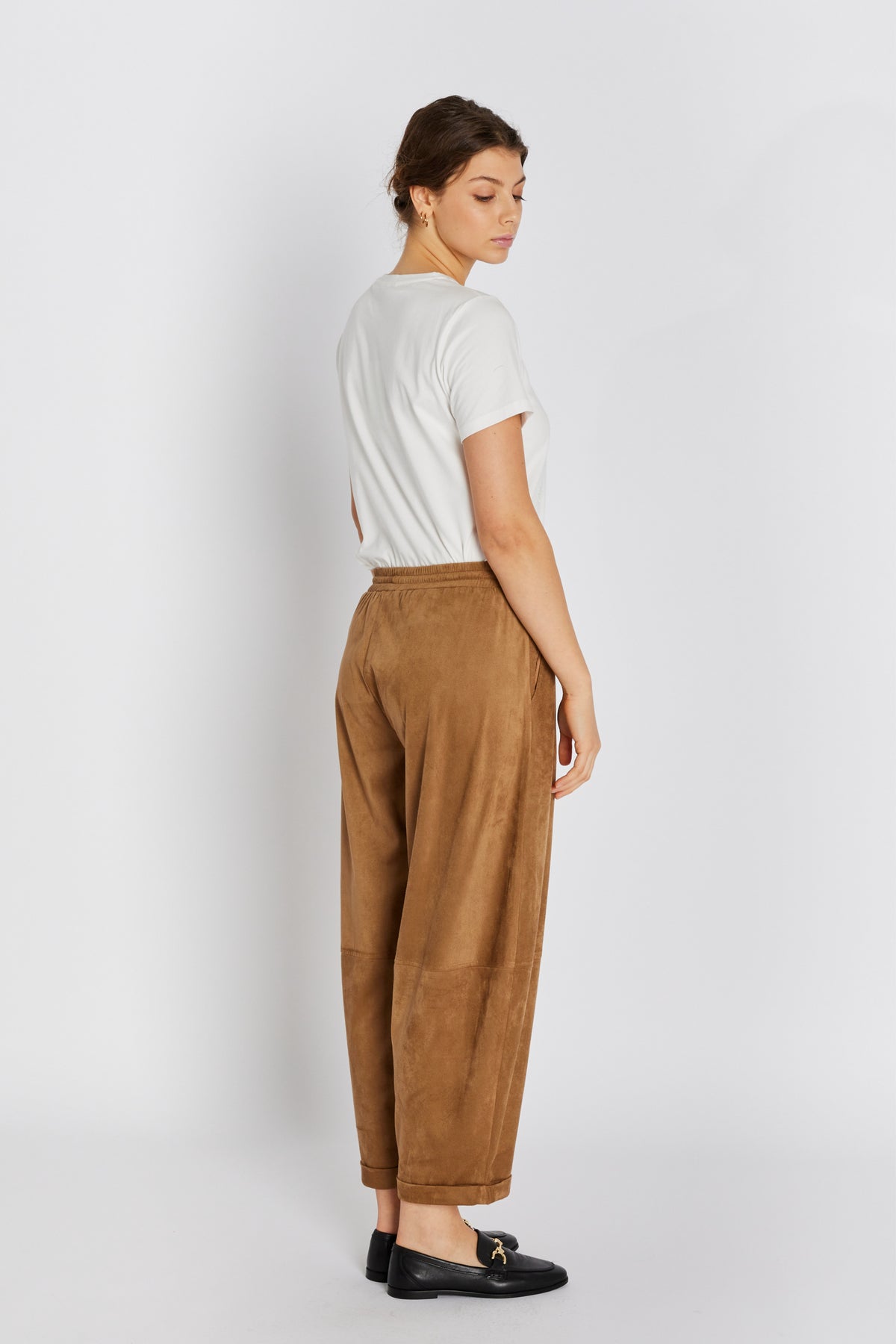 7710RDFCameronia bukser er designet i blødt imiteret ruskind med en afslappet, men elegant silhuet. De har elastisk talje med bindebånd og opretter et luksuriøst hverdagslook.