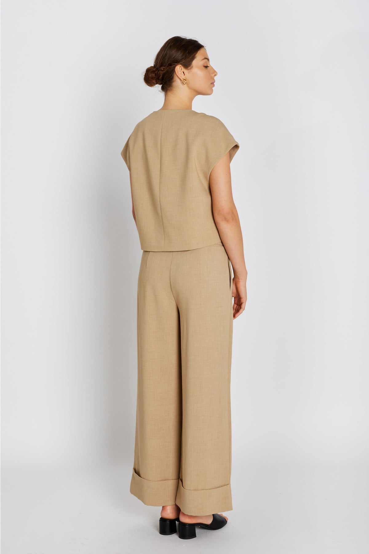6800RDFKylie er et par vide bukser med opsmøgede ben og en blød elastisk linning, der kombinerer komfort og elegance. Et afslappet snit med stilrent udtryk.