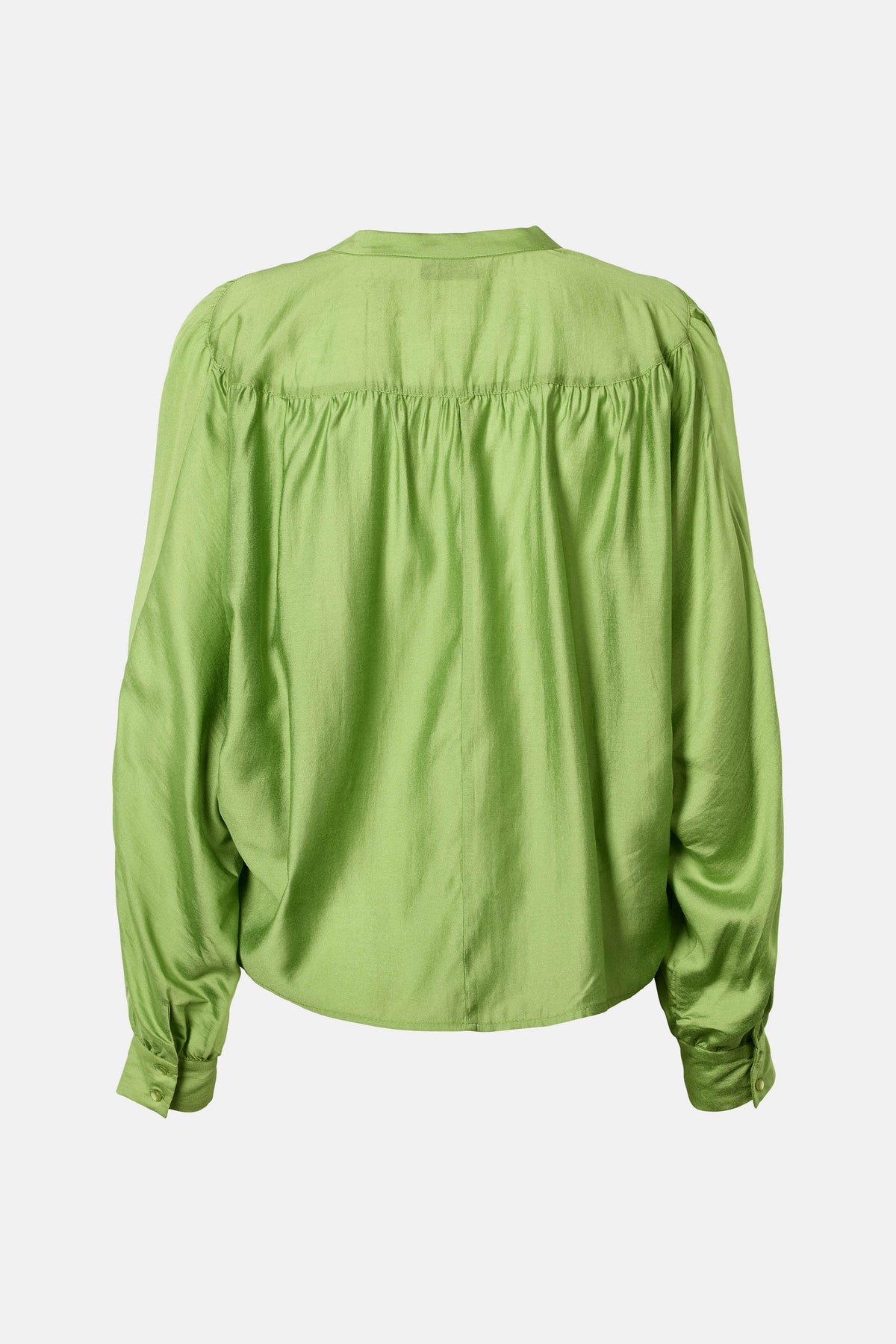 7705RDFNewMirelle bluse er en let bluse med knaplukning foran og små læg, der giver en blød og bevægelig silhuet. De vide ærmer tilfører et feminint touch og skandinavisk enkelthed.