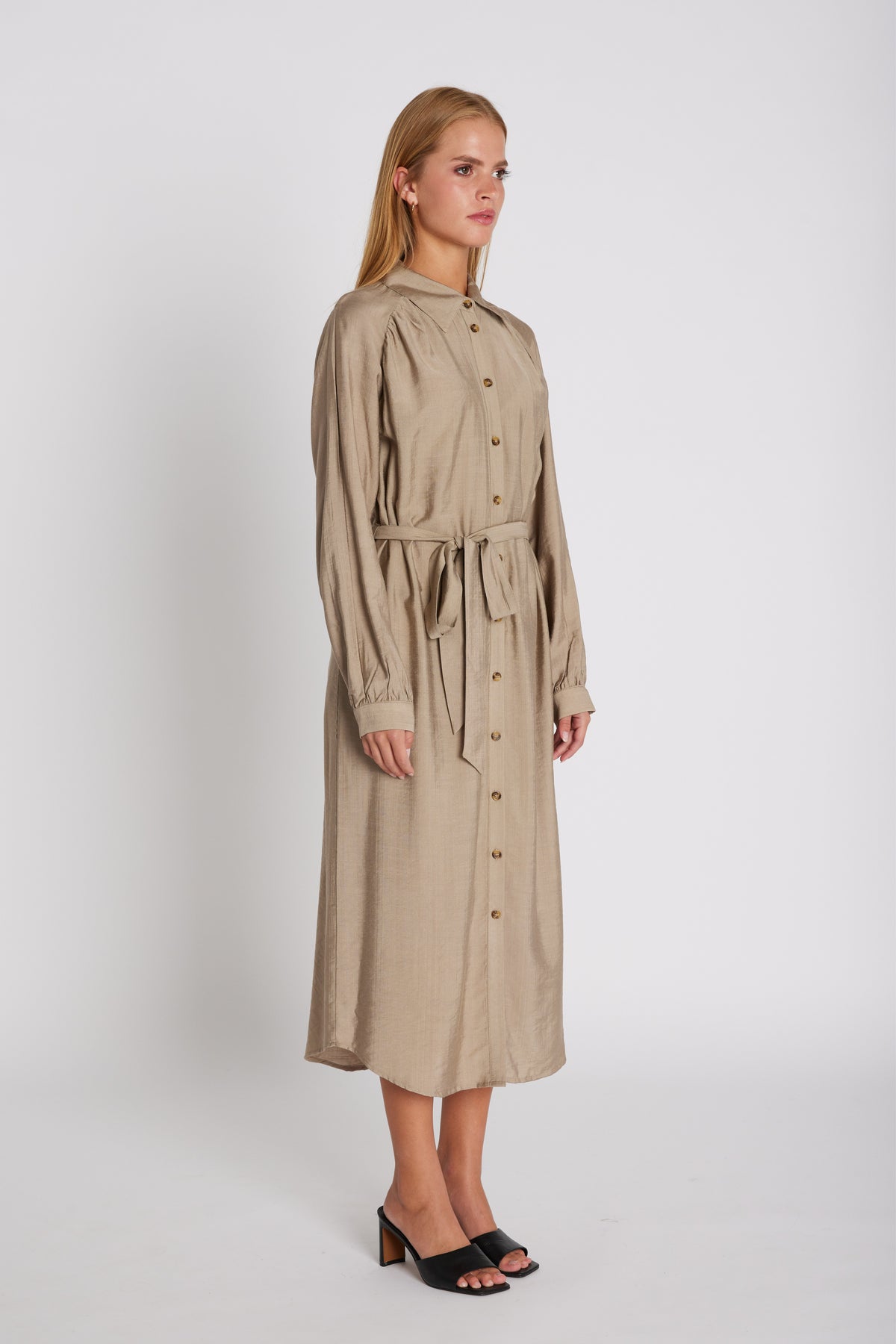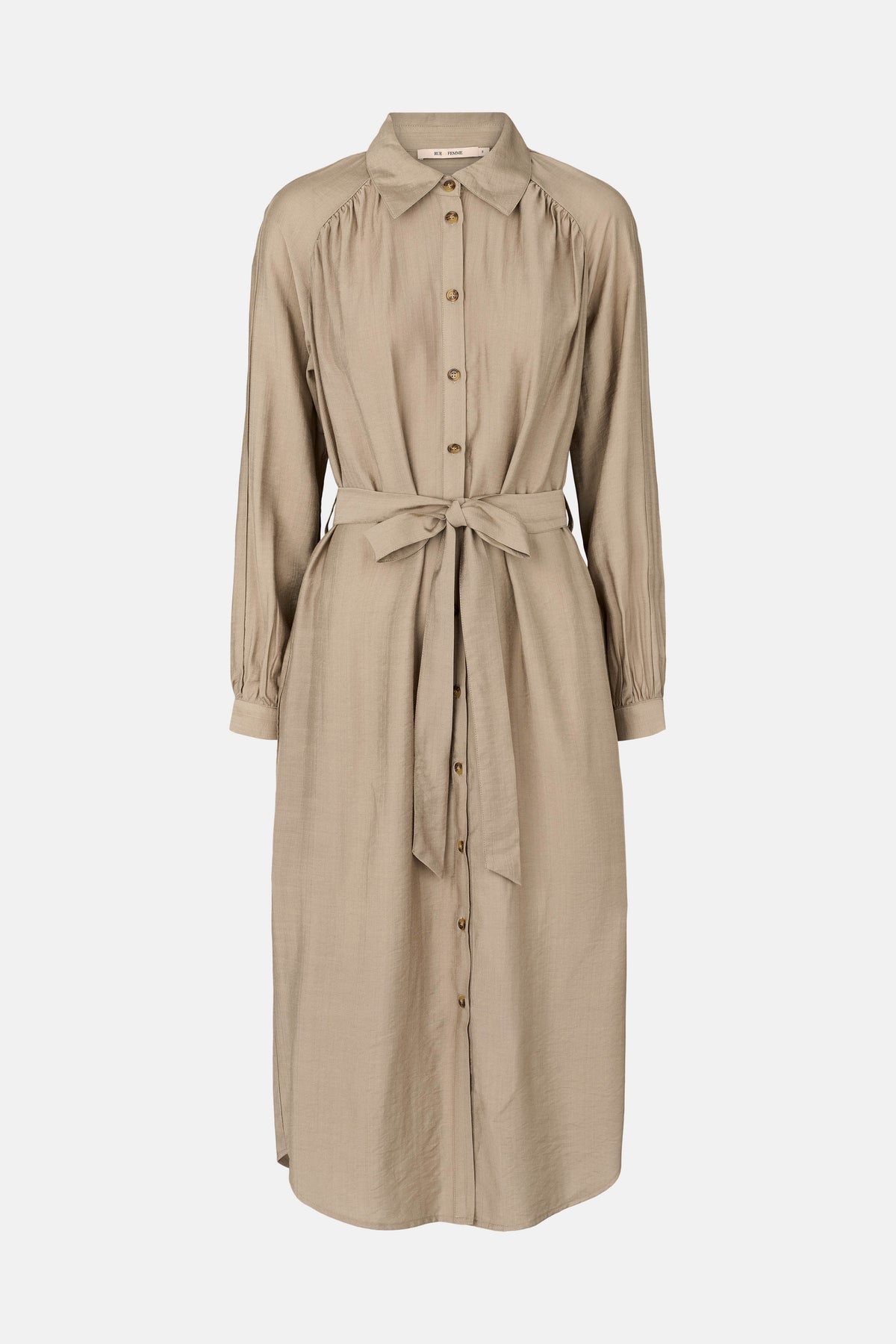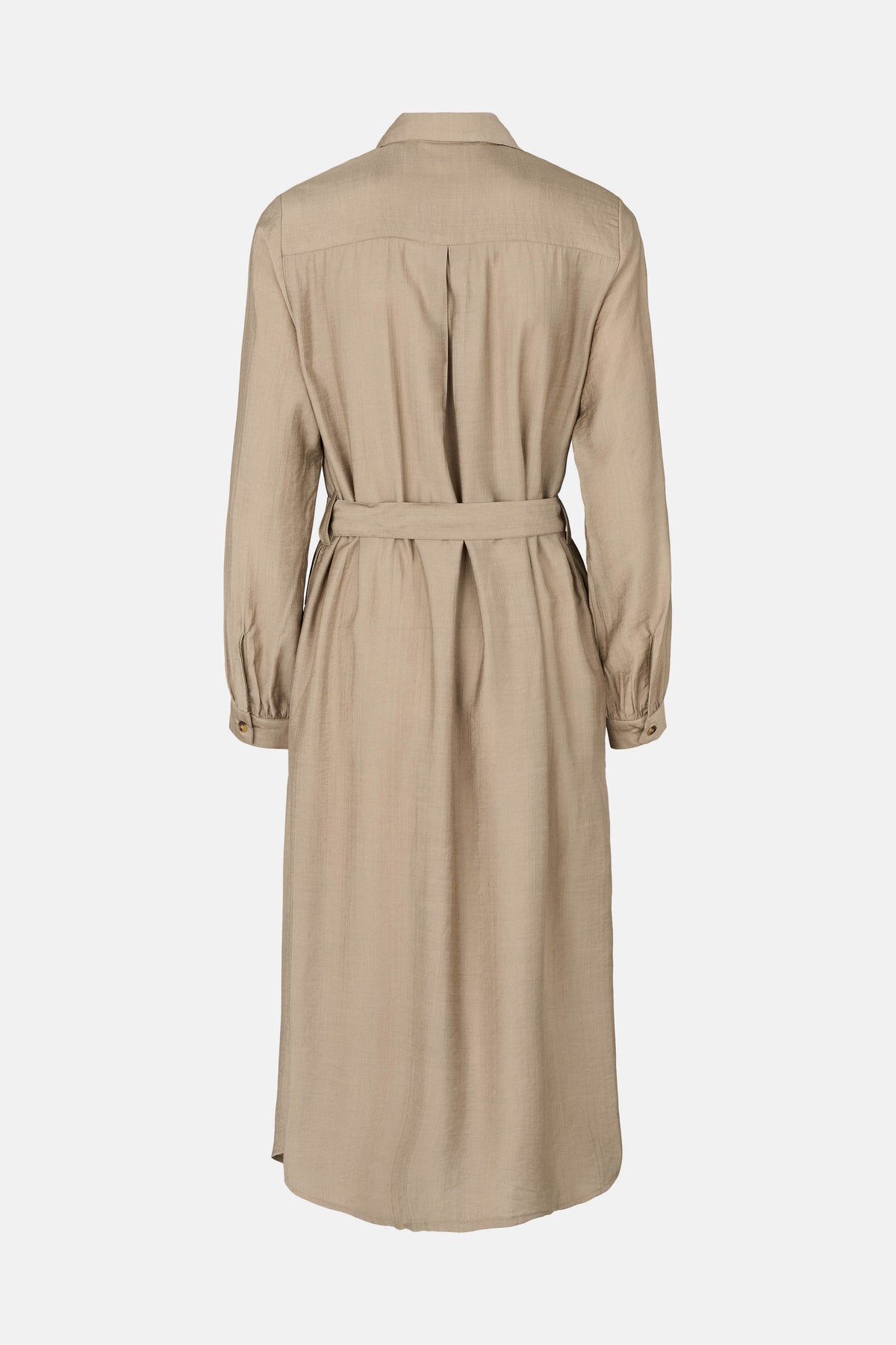 7639RDFDaria kjolen er en lang skjortekjole med rene linjer og et feminint bælte, der fremhæver taljen og giver et tidløst, skandinavisk udtryk.
