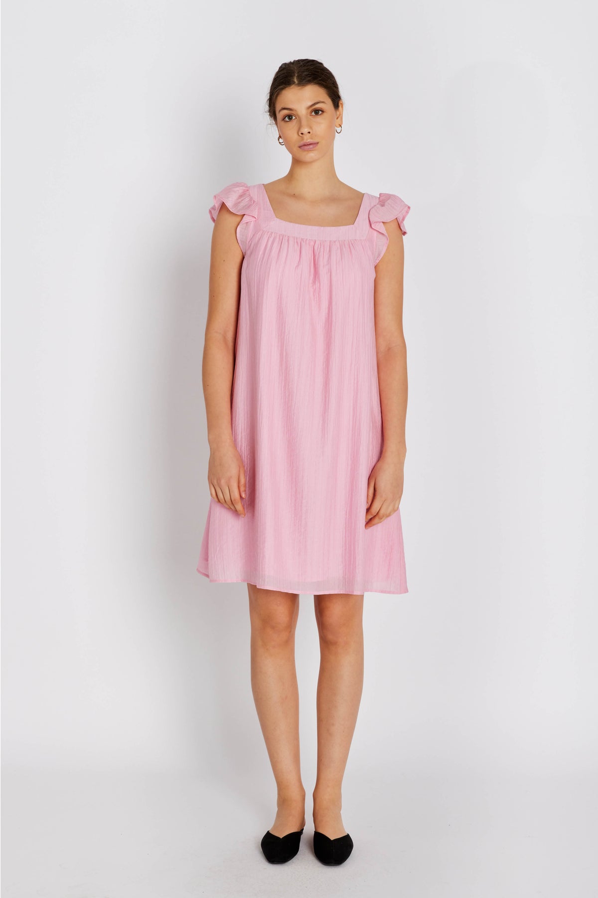 7784RDFIsmere dress is a feminine and effortless dress crafted in a lightweight textured fabric with a soft drape. The wide square neckline and delicate ruffle sleeves add a romantic touch, while the relaxed silhouette ensures comfort and movement.