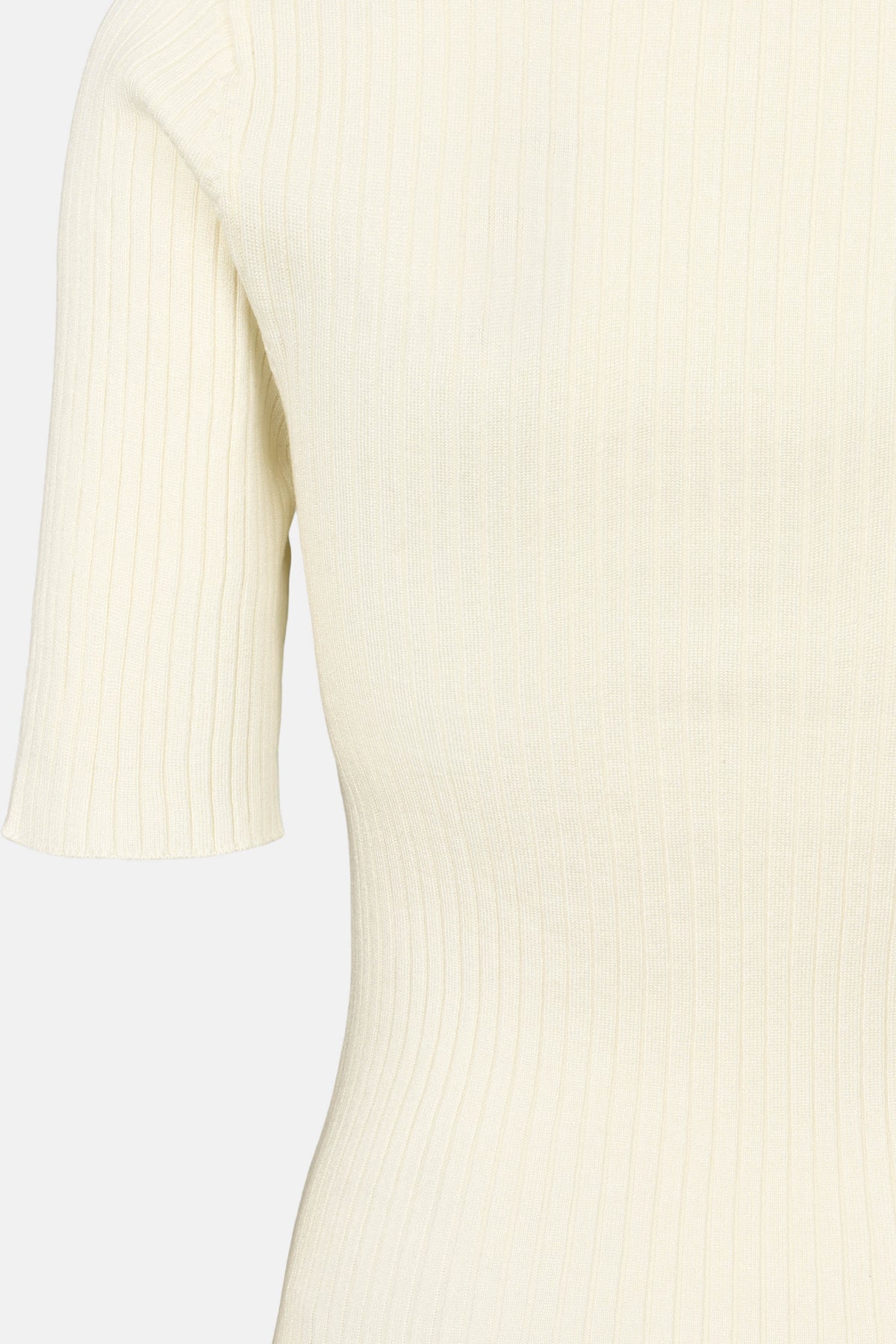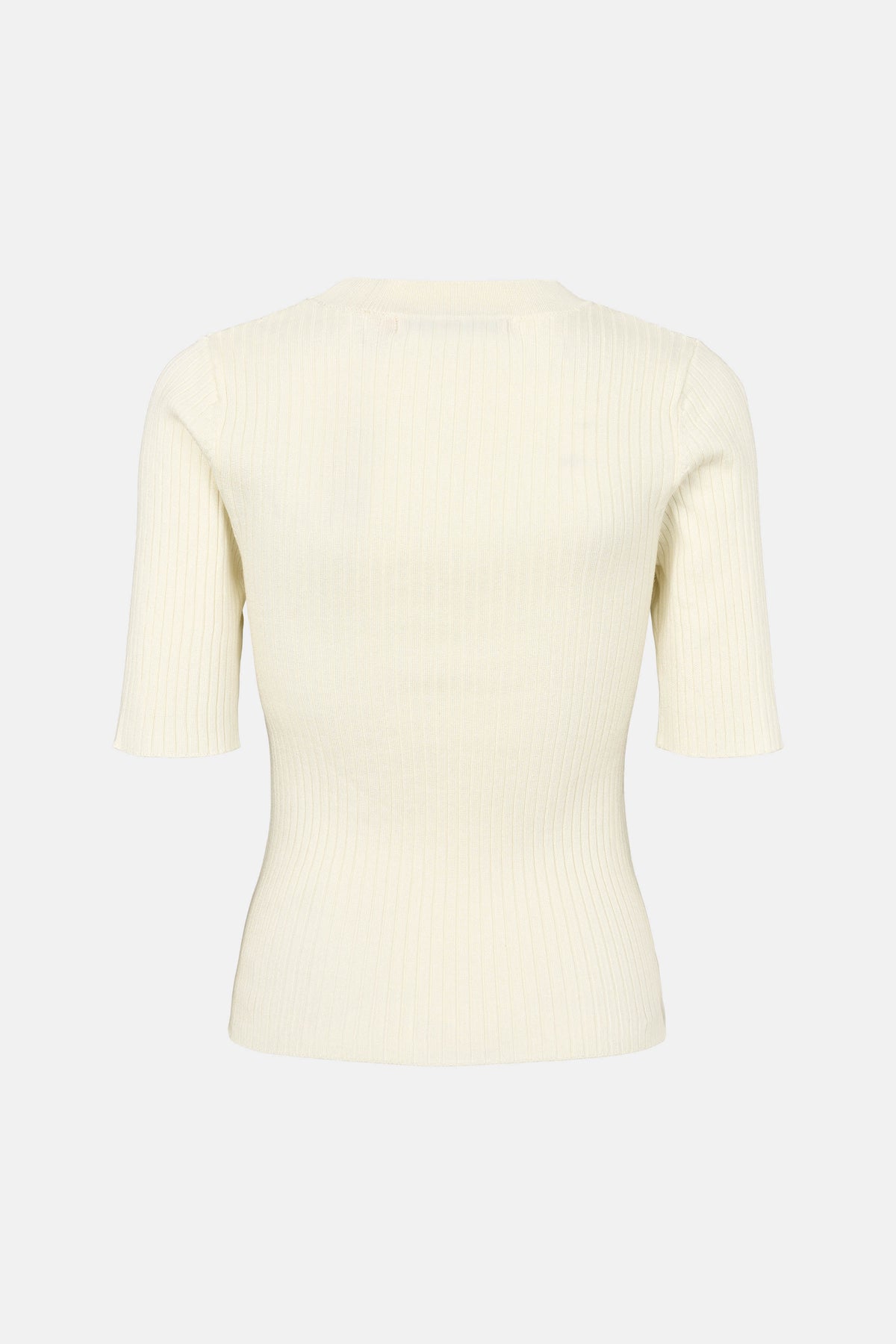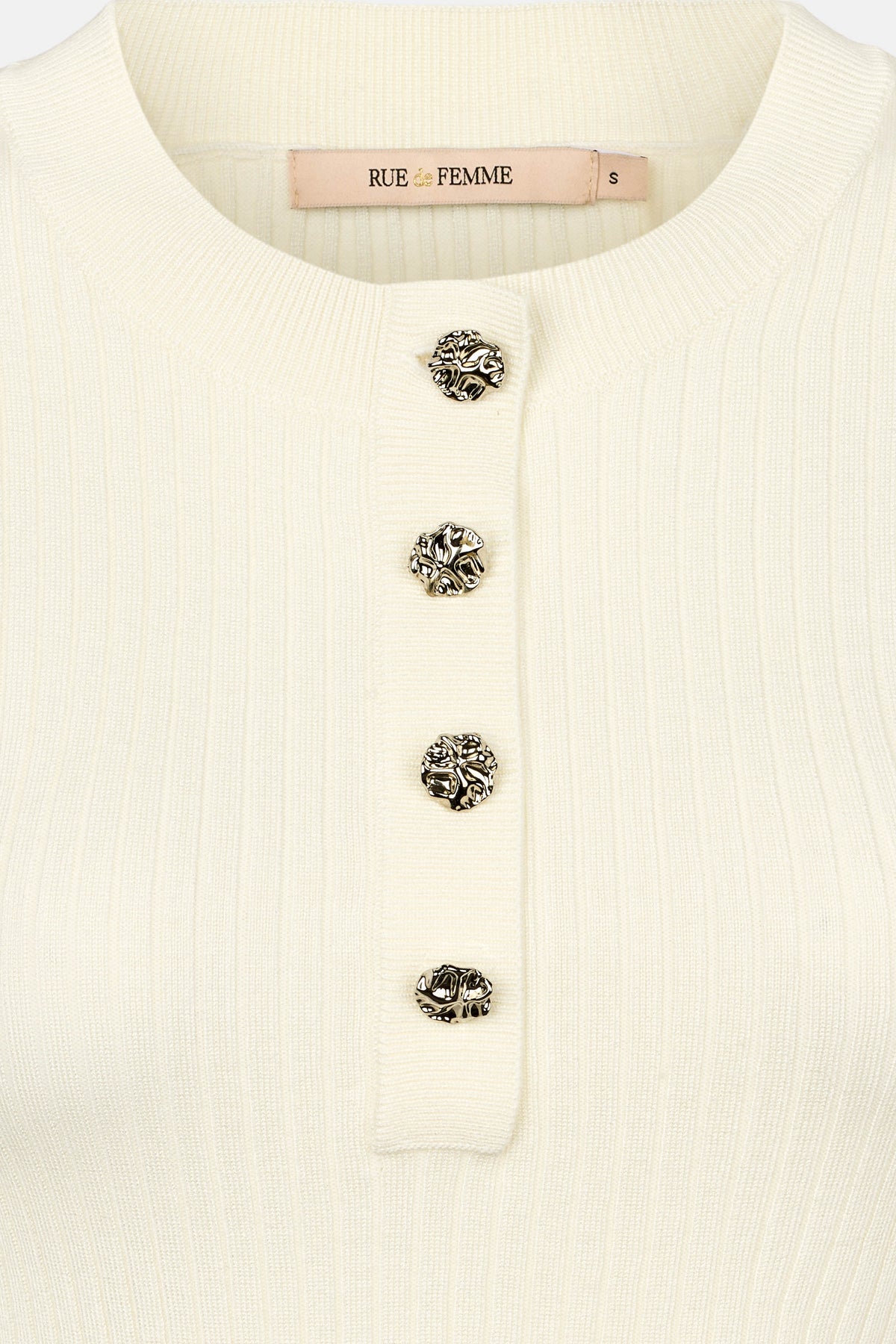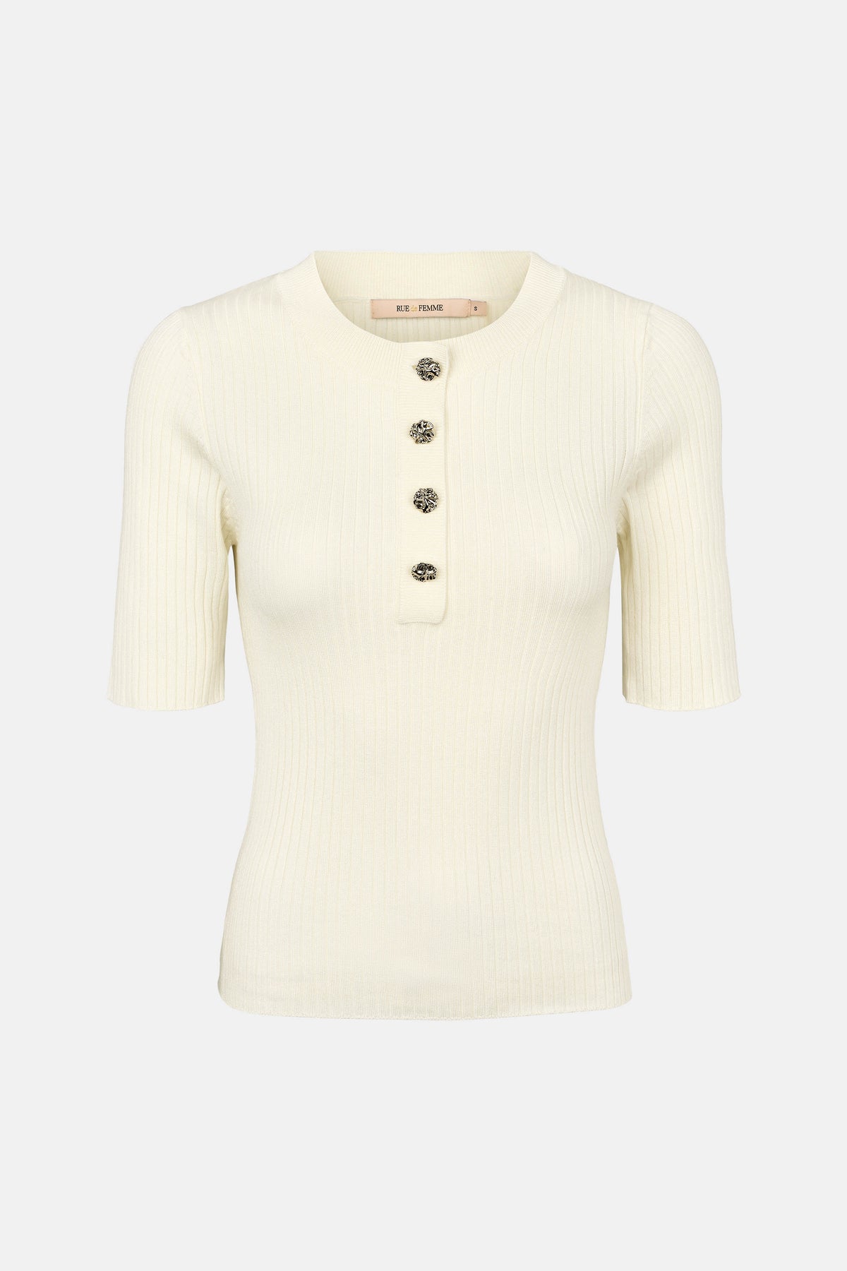7493RDFFennec is a form-fitting knit blouse with short sleeves and a classic O-neck. The decorative button placket adds a sophisticated twist to the minimalist design.