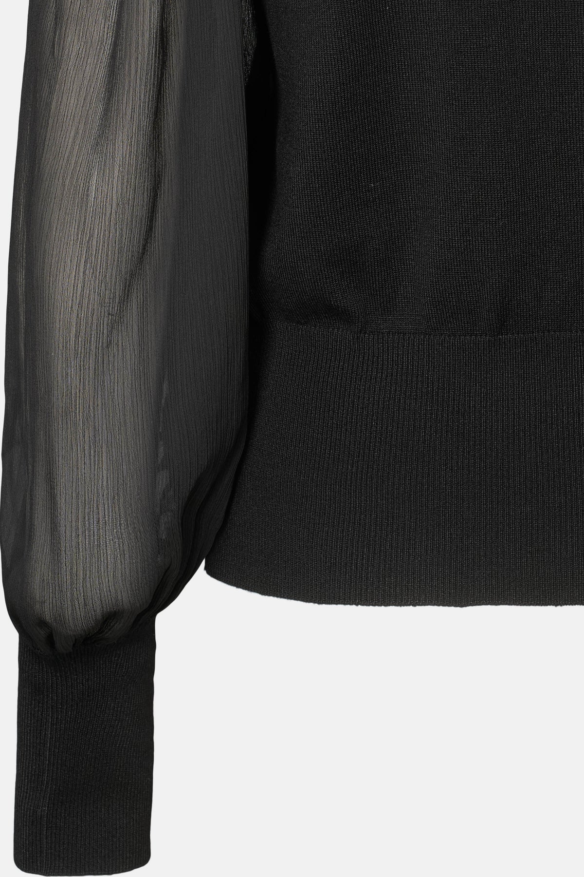 7493RDFKatrica knit blouse is a feminine sweater with elegant balloon sleeves and gathered shoulder details, adding a light and sophisticated expression.