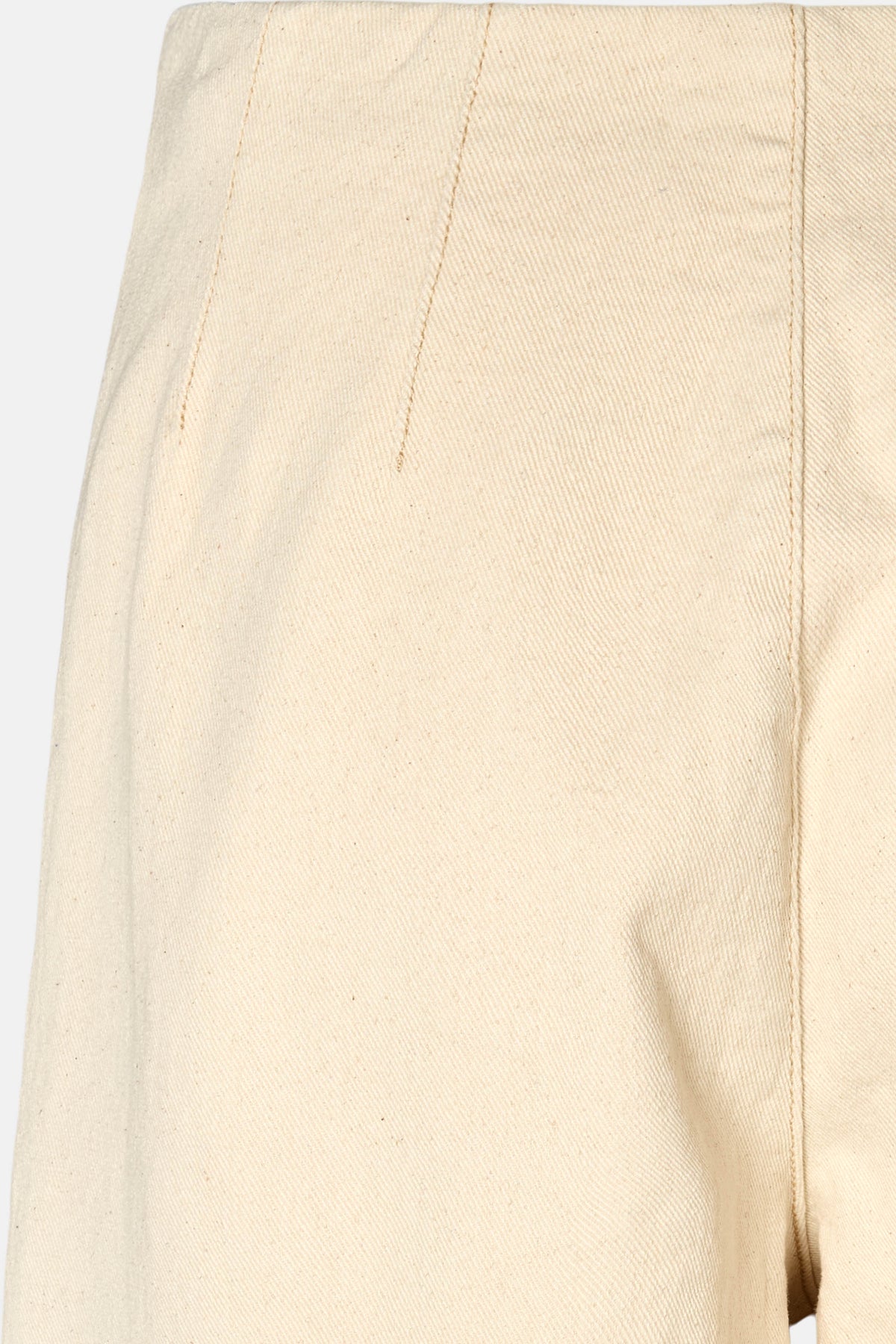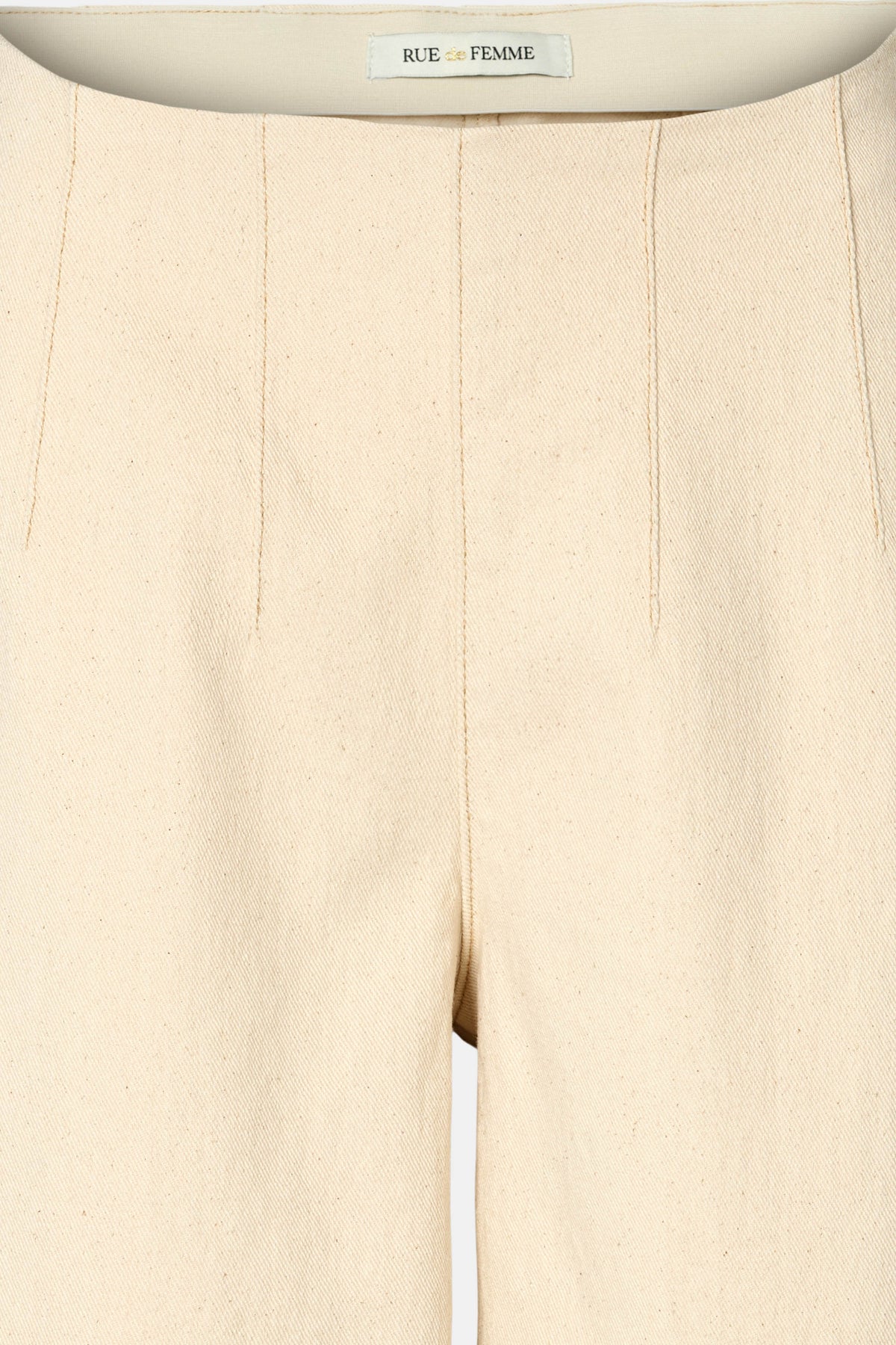 - High-waisted fit - Vertical front seams - Rounded leg shape - Simple back closure