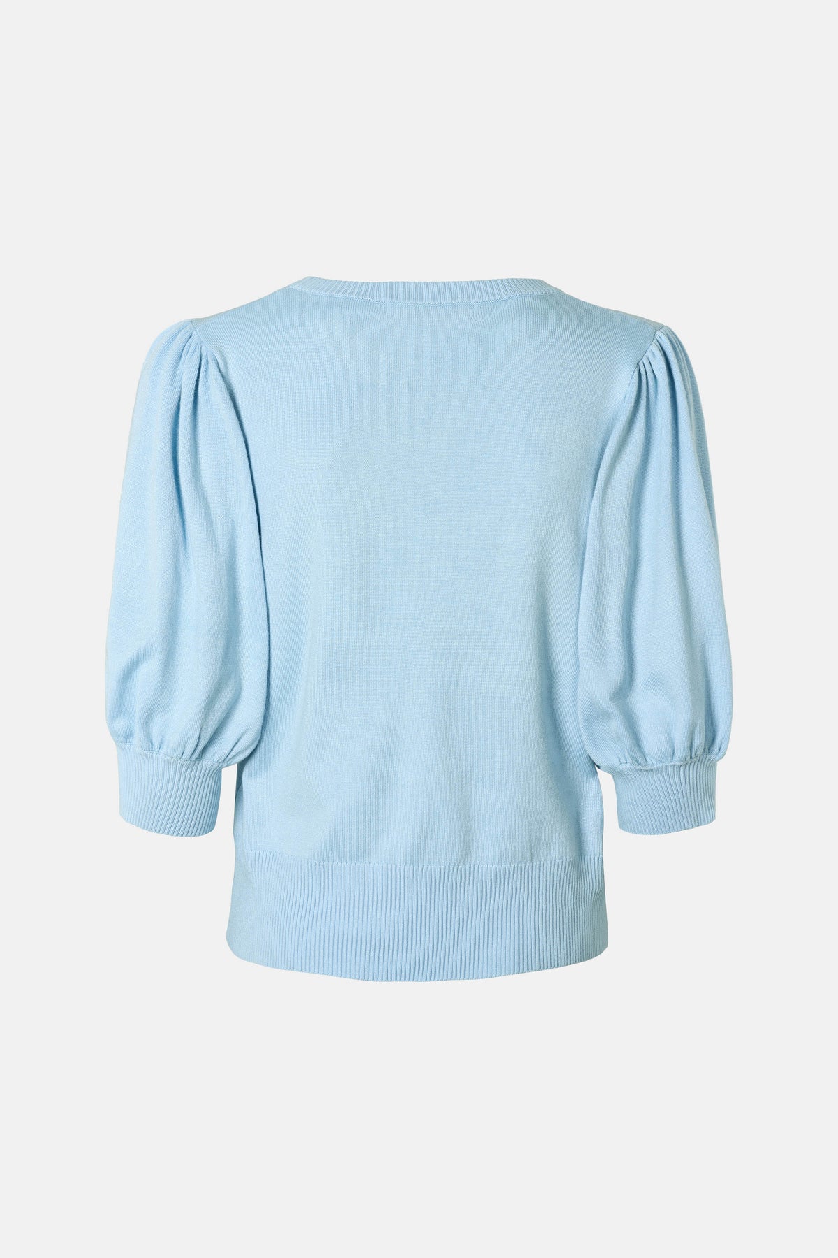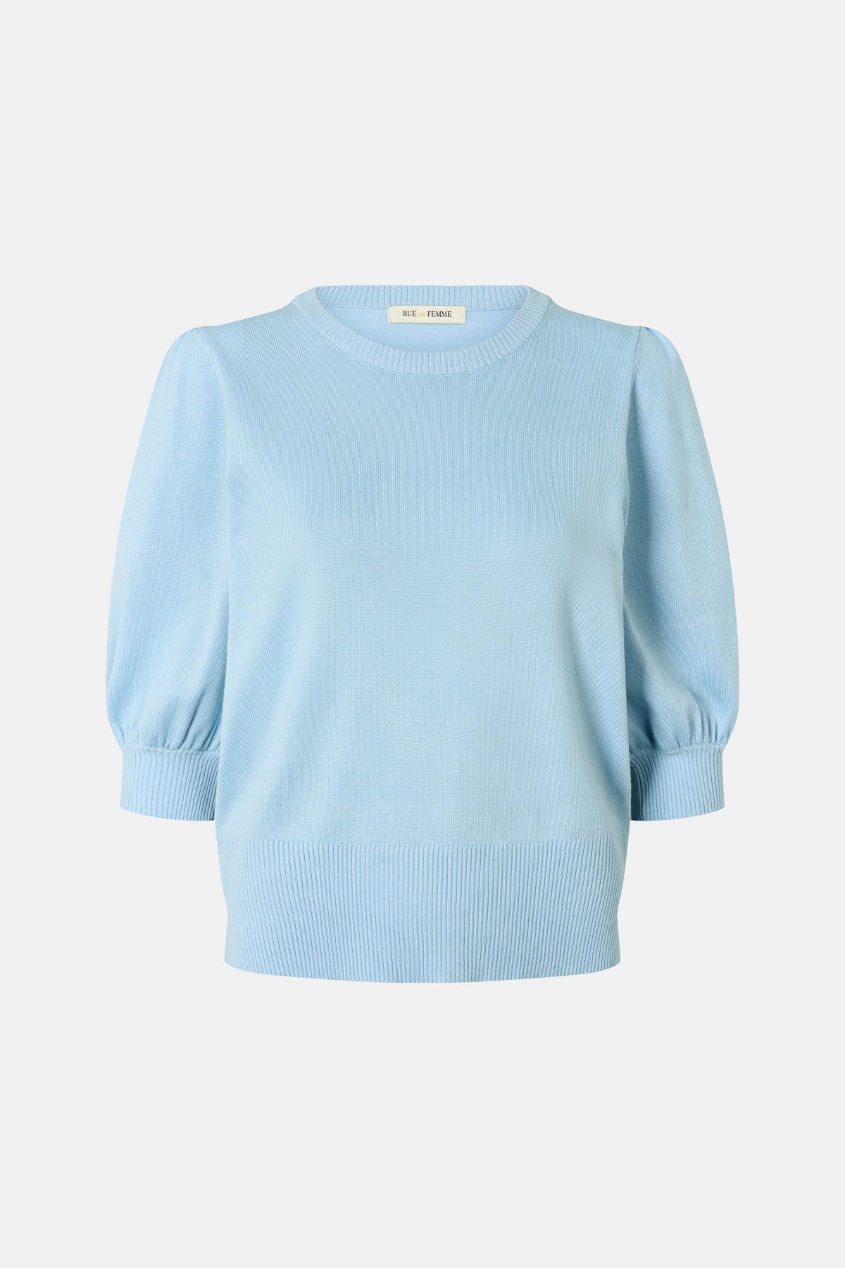 - Short voluminous sleeves - Classic round neckline - Ribbed details at cuffs and bottom
