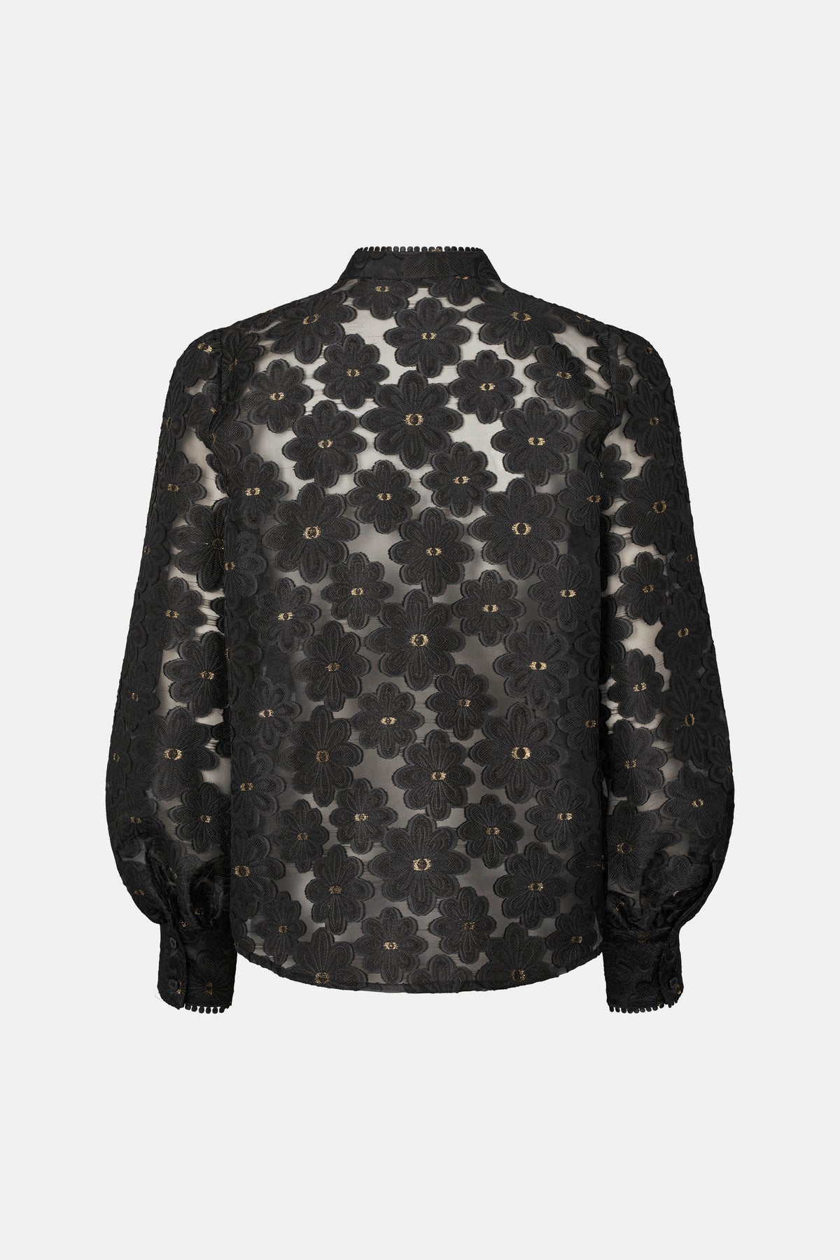 7676RDFViljea skjorte er en elegant skjorte med lange ærmer med rynk og høje manchetter. Den opretstående krave understreger skjortens feminine og sofistikerede udtryk.