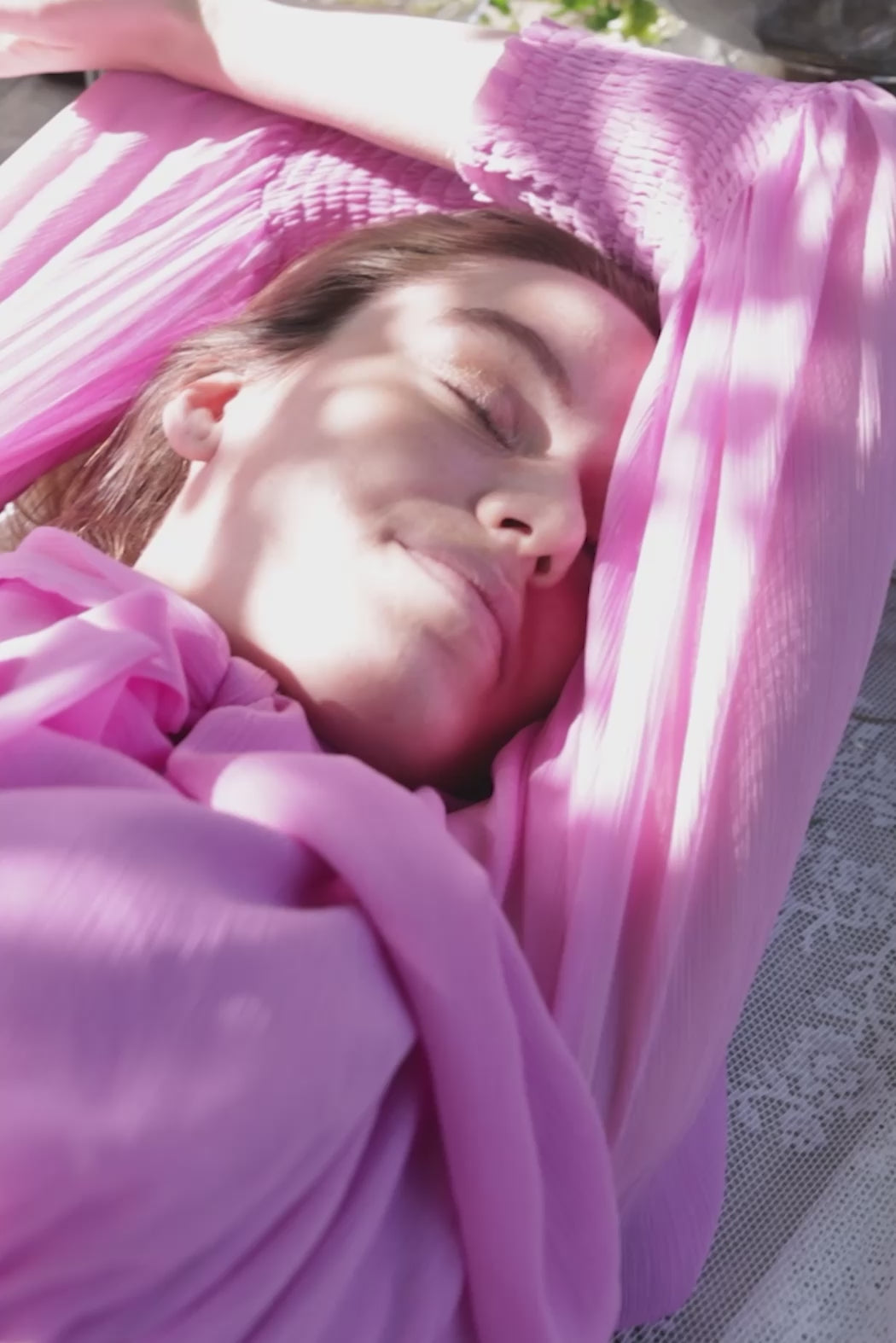 - Long sleeves with smocked cuffs - Defined waist - Back tie and keyhole detail - Light crepe fabric